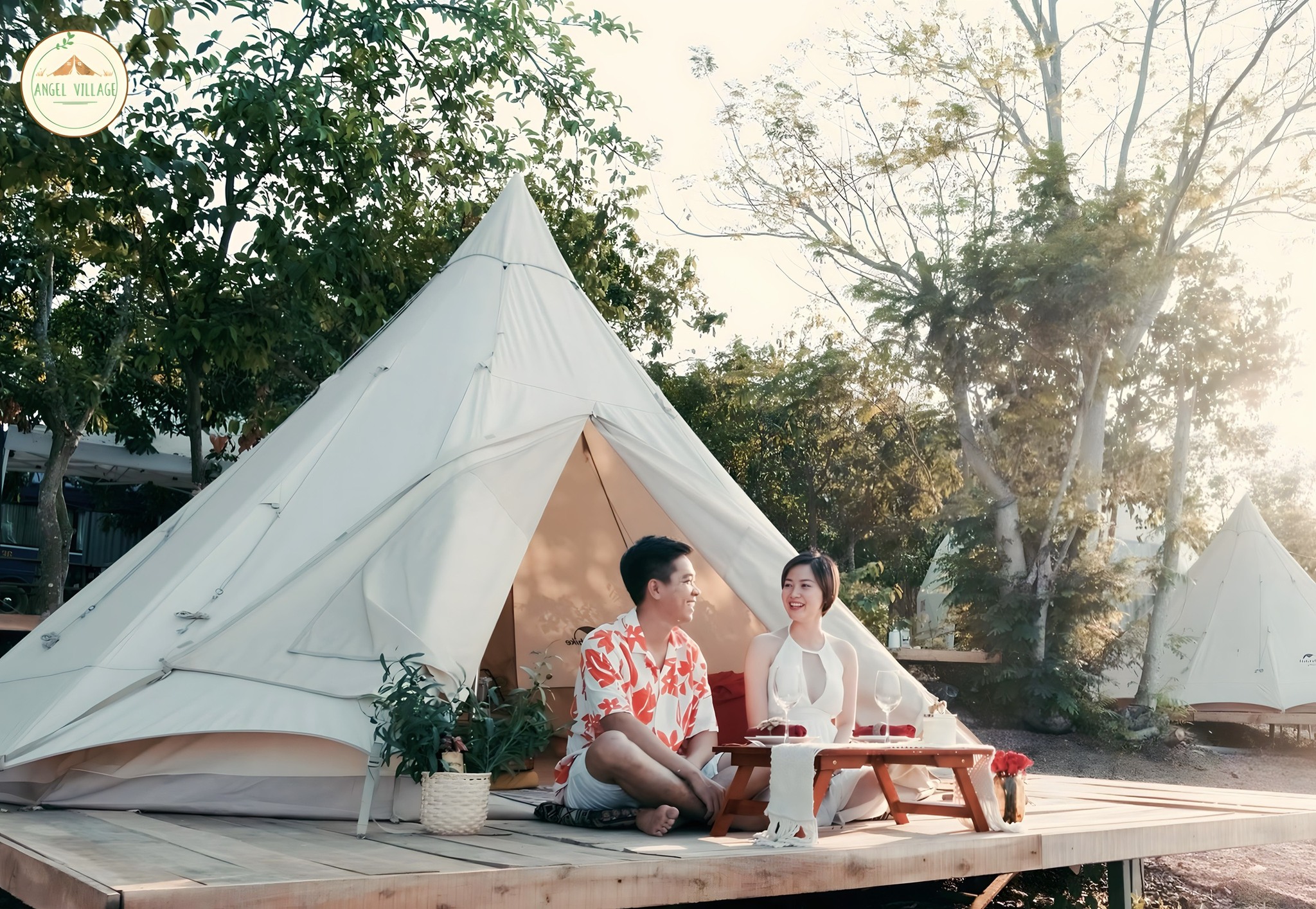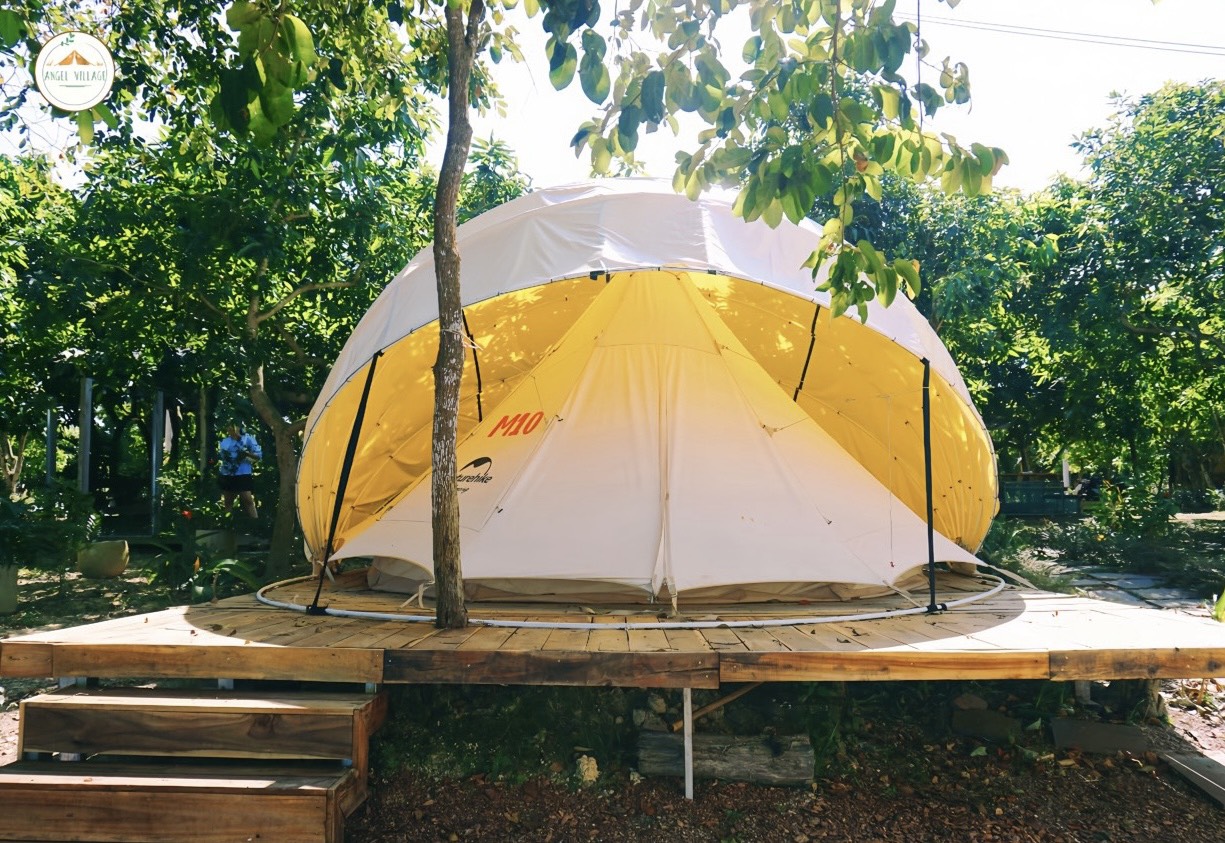 Angel Village cách Thành phố Hồ Chí Minh khoảng 80km. Giữa không gian thư giãn bình yên, nơi cỏ cây xanh tươi và gió mát lành thổi qua Angel Village trở thành một thiên đường nhỏ dành cho những ai khao khát trải nghiệm cắm trại sang trọng, đồng thời khám phá vẻ đẹp thiên nhiên hoang sơ.