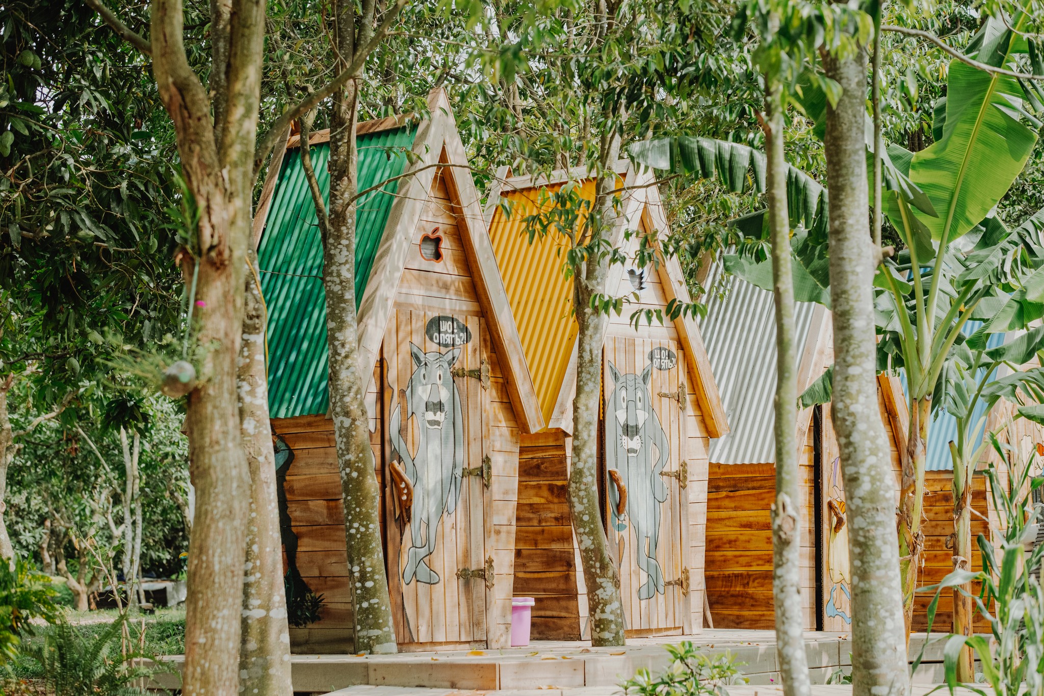 Bungalow dùng nhà tắm, nhà vệ sinh riêng. Các lều dùng nhà tắm, nhà vệ sinh chung. Tất cả đều có máy nóng lạnh.