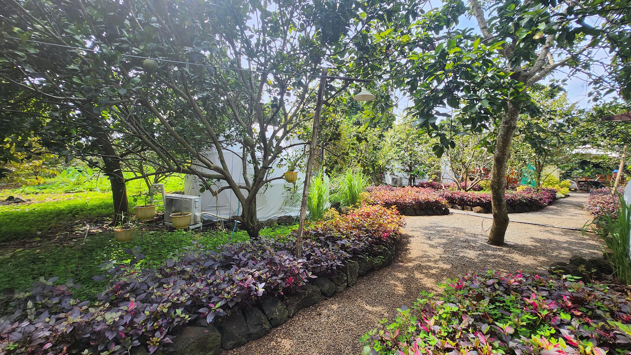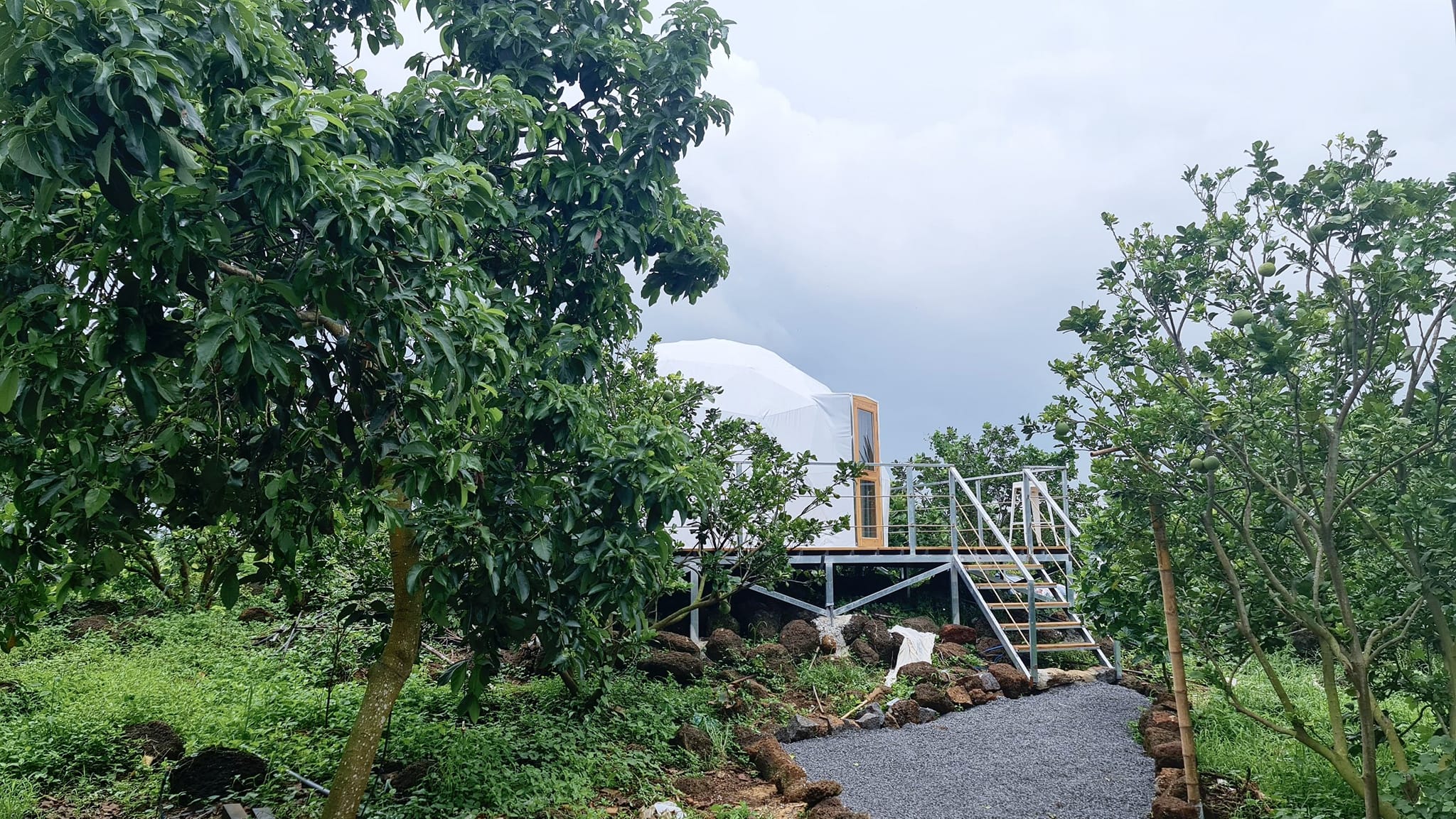 Điểm nhấn đầu tiên của B-Glamping chính là khu vườn rộng lớn 20.000 m2. Đây là không gian hoàn hảo để bạn thư giãn và hòa mình vào thiên nhiên. Khu vườn được thiết kế với những con đường rải đá lát nền, tạo cảm giác dạo bước nhẹ nhàng và thoải mái. Xung quanh khu vườn là những tán cây xanh mướt, tràn ngập không khí trong lành. Bạn có thể ngồi nghỉ ngơi dưới bóng mát của những tán cây rợp bóng, lắng nghe tiếng chim hót líu lo, và để tâm hồn thư thái hòa cùng nhịp điệu của thiên nhiên.