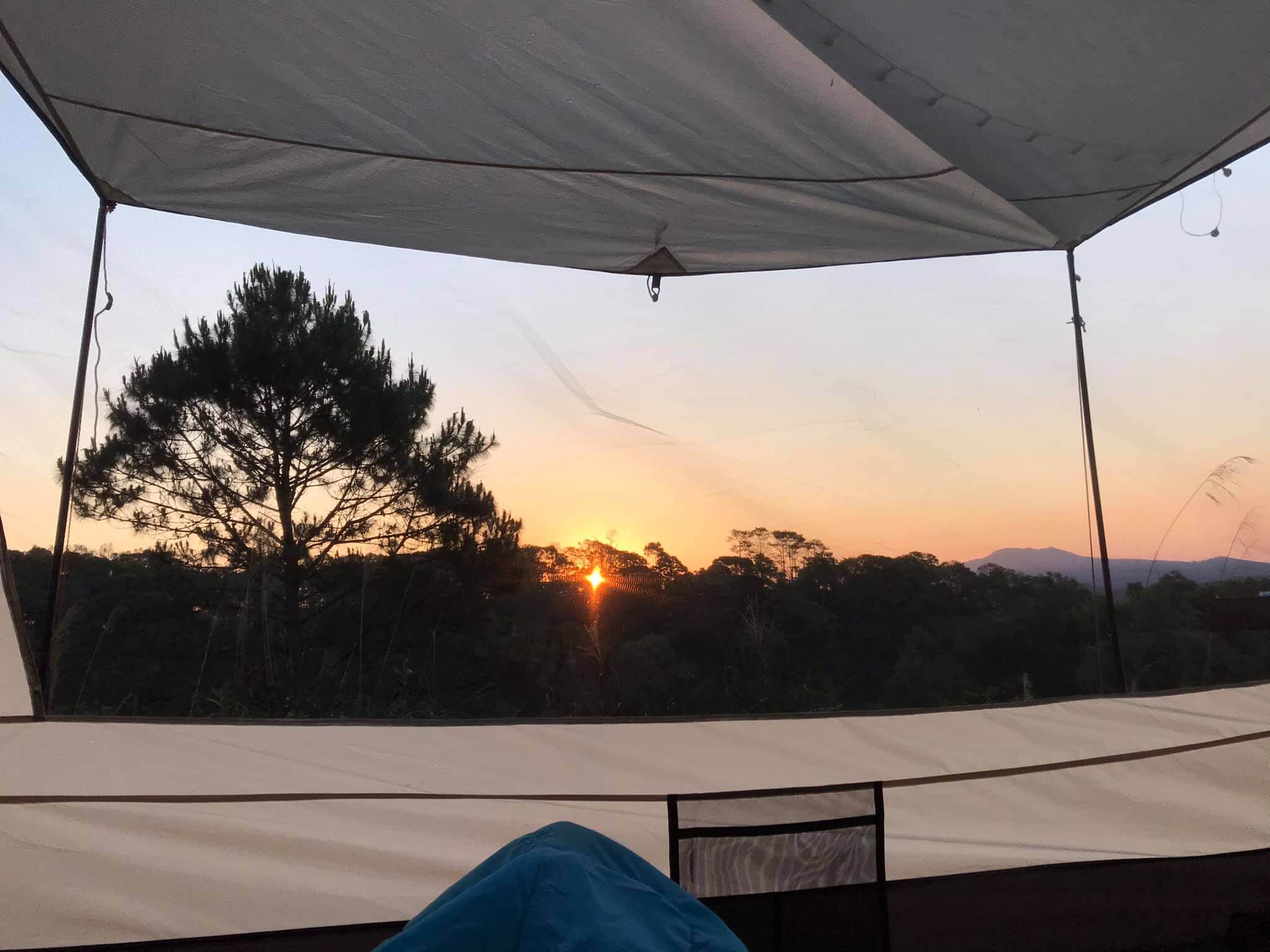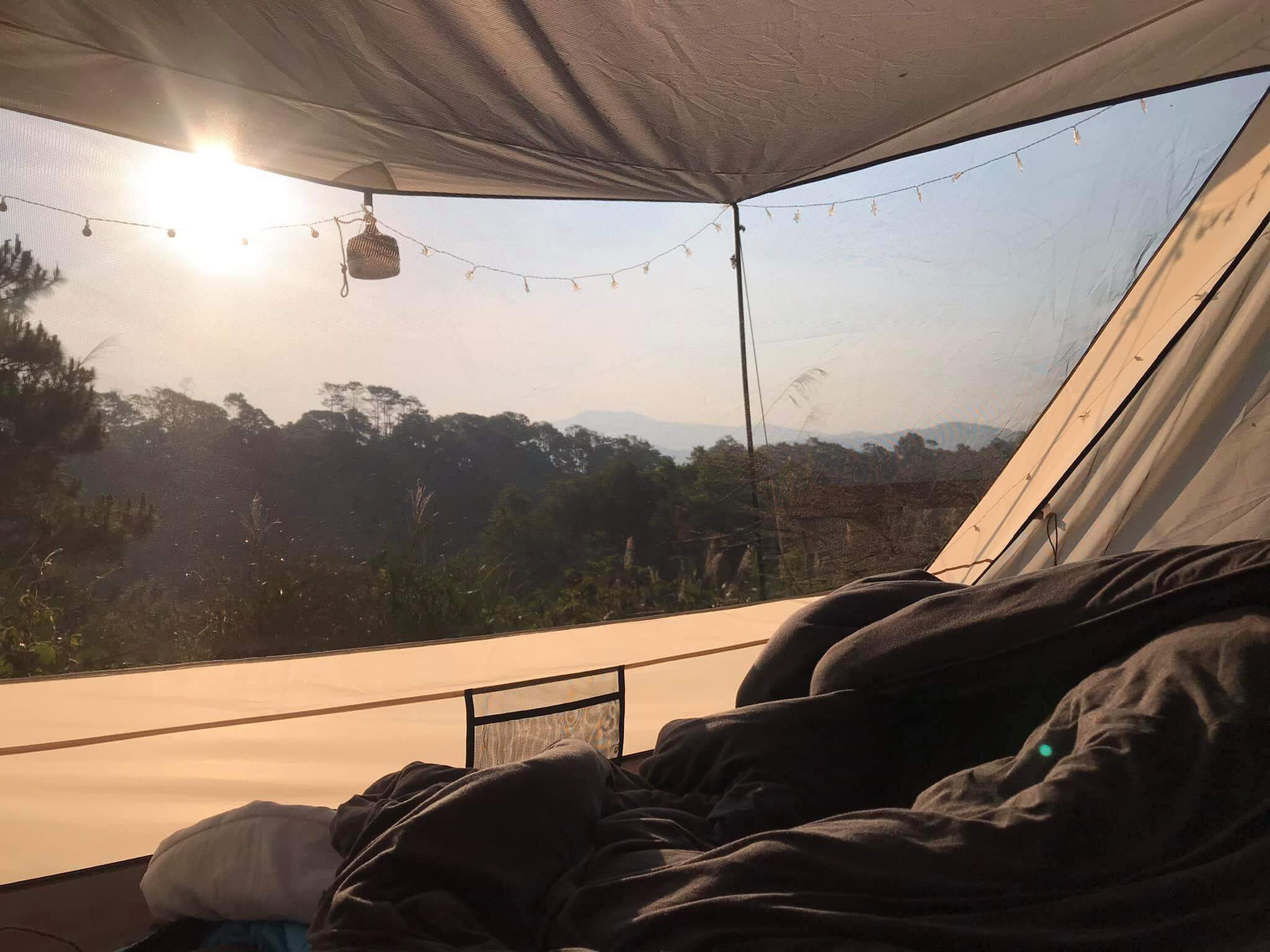 - Không gian rộng rãi, bên trong có gối, nệm, và túi ngủ ấm cúng