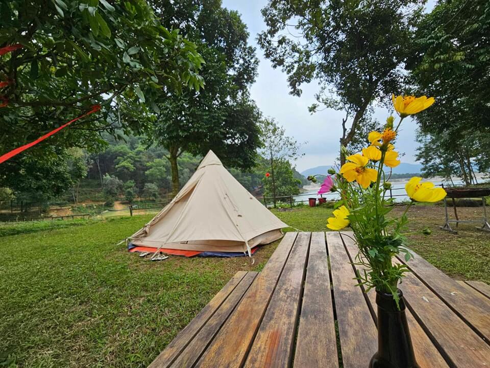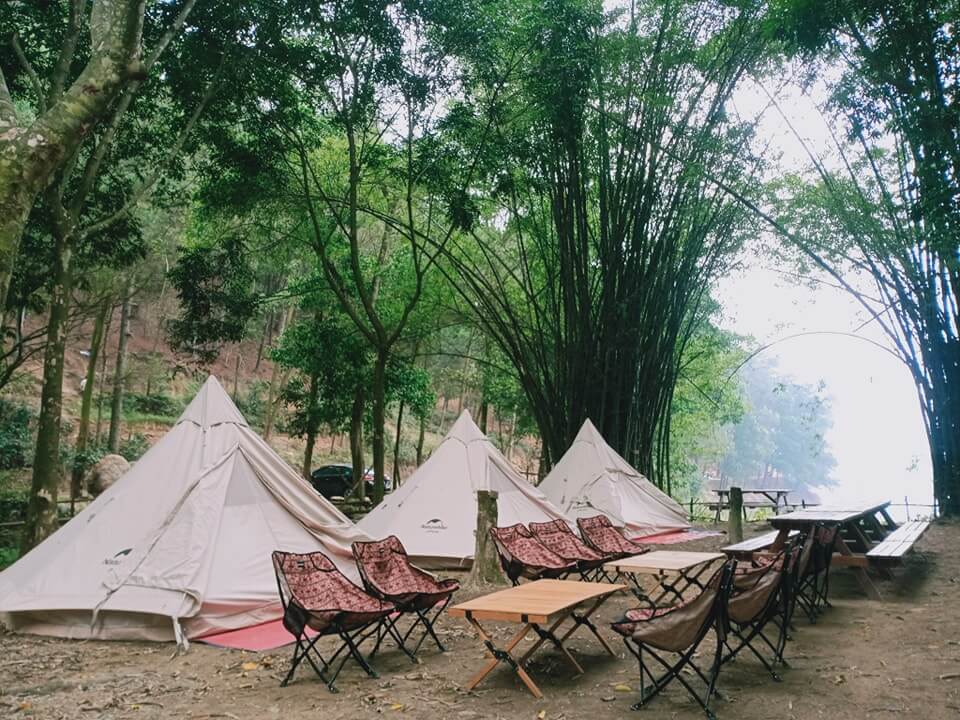 Boar Glamping nơi bạn có thể trải nghiệm cắm trại cao cấp dưới tán cây xanh, nghe tiếng suối tự nhiên chảy róc rách ôm lấy khu, ngắm mặt hồ tĩnh lặng in bóng mặt trời mọc buổi sáng.