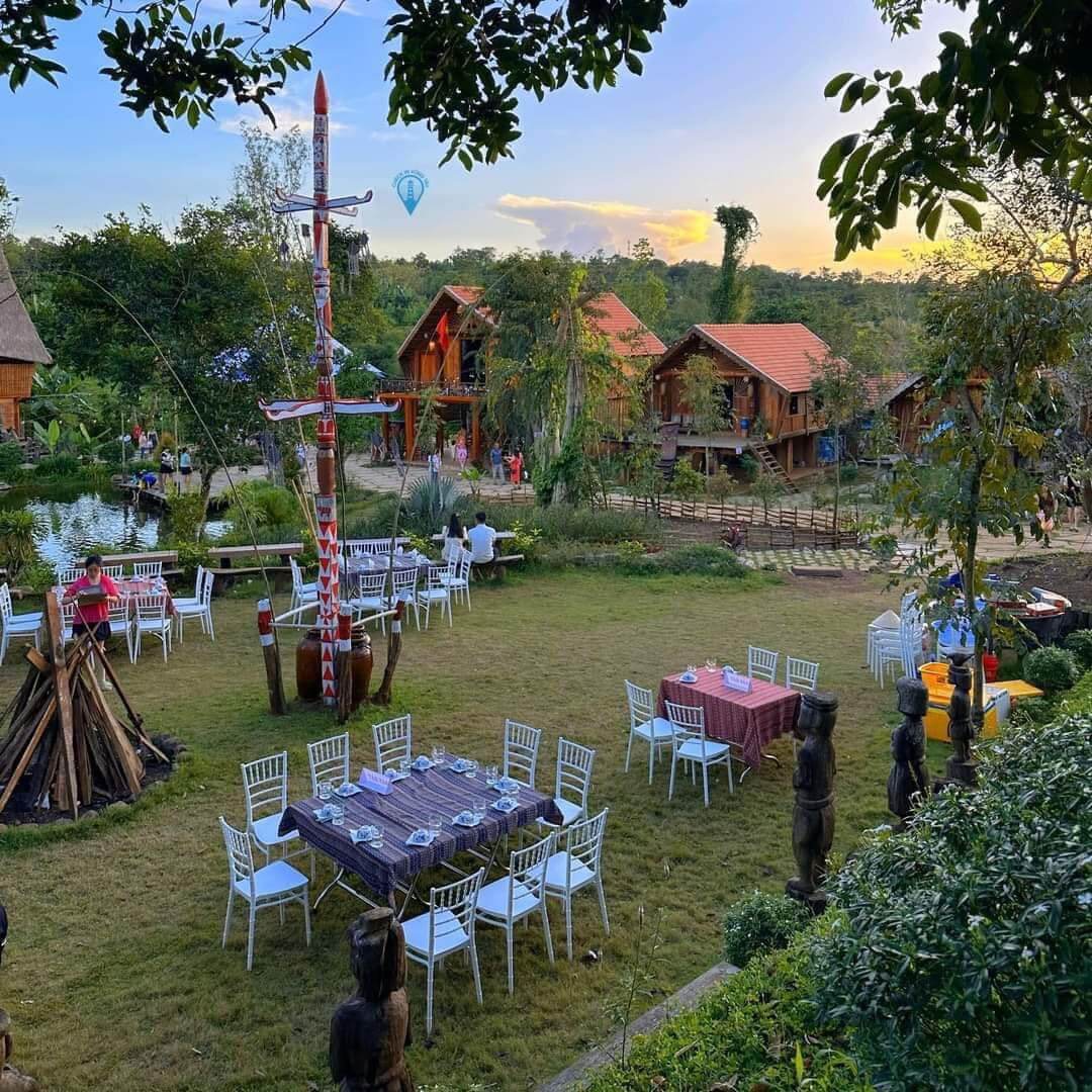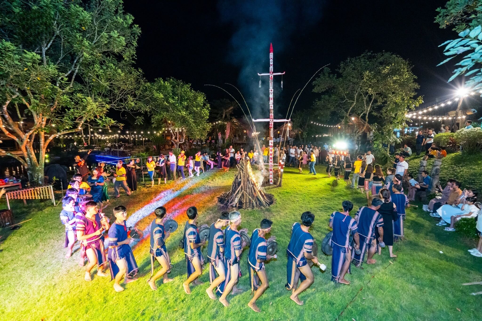 - Trải nghiệm đốt lửa trại và các tiện ích nội khu (suối đá, hồ cá koi, đồ thổ cẩm, nhạc cụ truyền thống người Tây Nguyên,…)