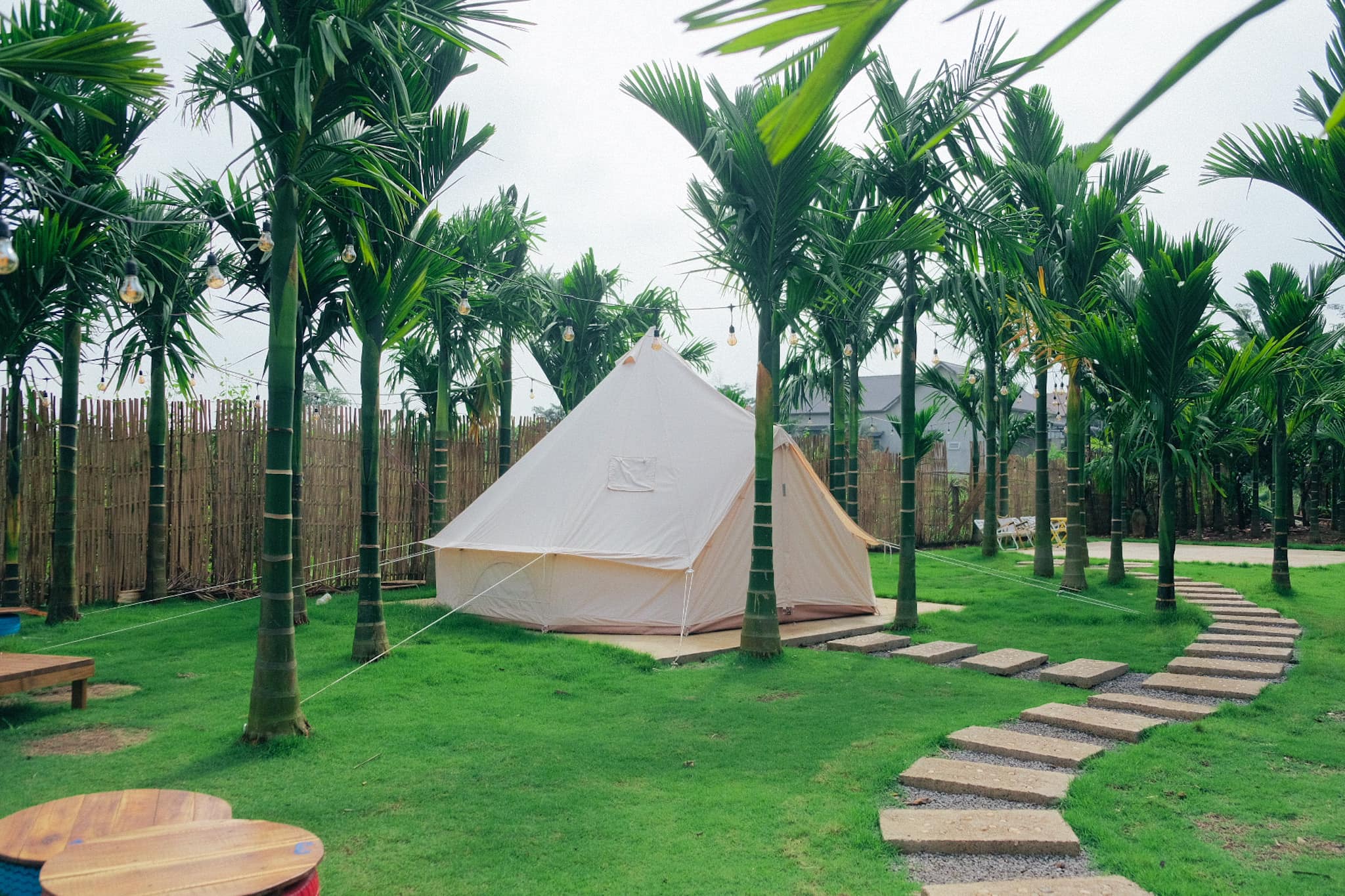 Nằm cách Biên Hòa khoảng 40km và trung tâm Long Khánh chỉ vài km, C.a.u Glamping là địa điểm sẽ giúp bạn được thư giãn với không gian xanh mát của vườn cau xanh mướt, cạnh bên hồ sen hồng khoe sắc, nổi bật giữa cánh đồng lúa xanh tươi.