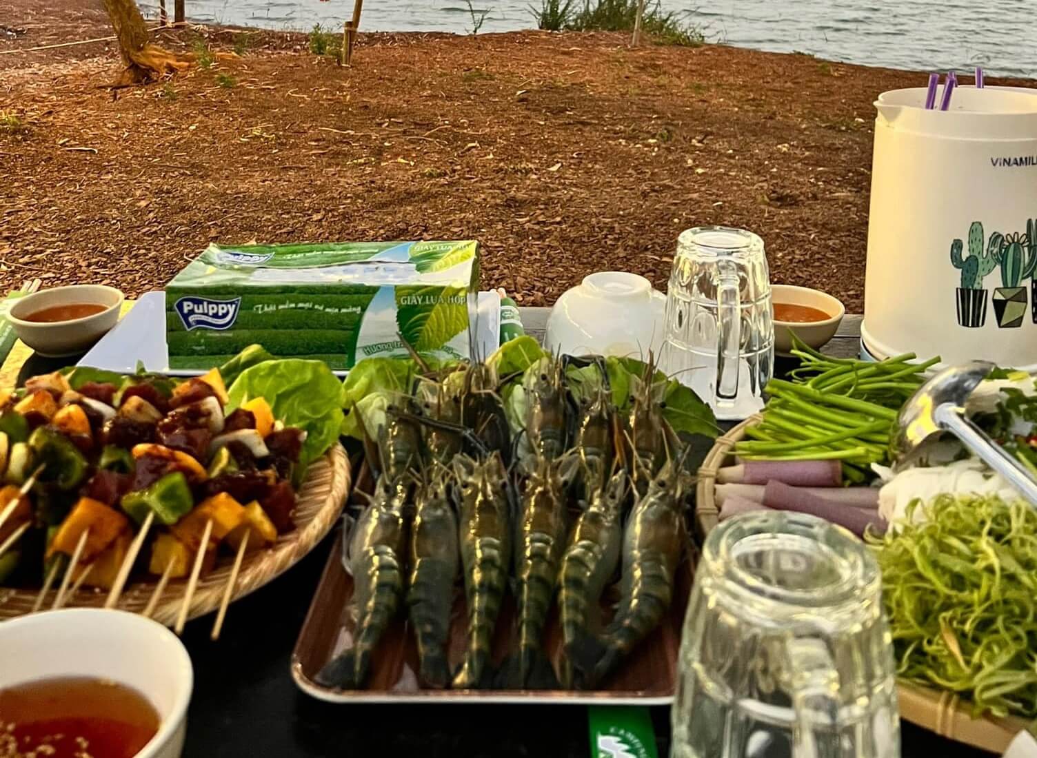 - Set up bàn ghế – chén dĩa – ly – bếp than – vỉ nướng