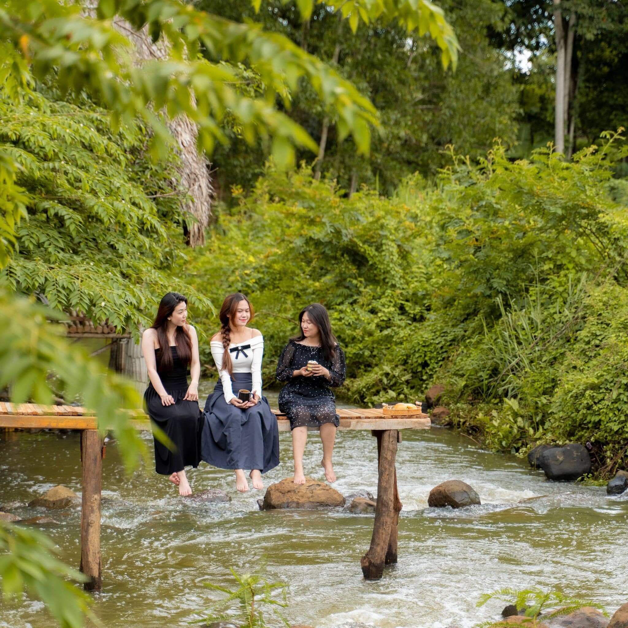 Là 1 trong những điểm đến để check-in mới toanh cùng các món ăn dân dã vùng nông thôn. Nơi đây mang đến một cảm giác như đang đứng giữa thiên nhiên, với tiếng chim hót và dòng suối róc rách trong xanh ngắm nhìn những đàn cá nhỏ bơi lội tung tăng yên bình. Quý khách có thể mò cua, bắt ốc suối.