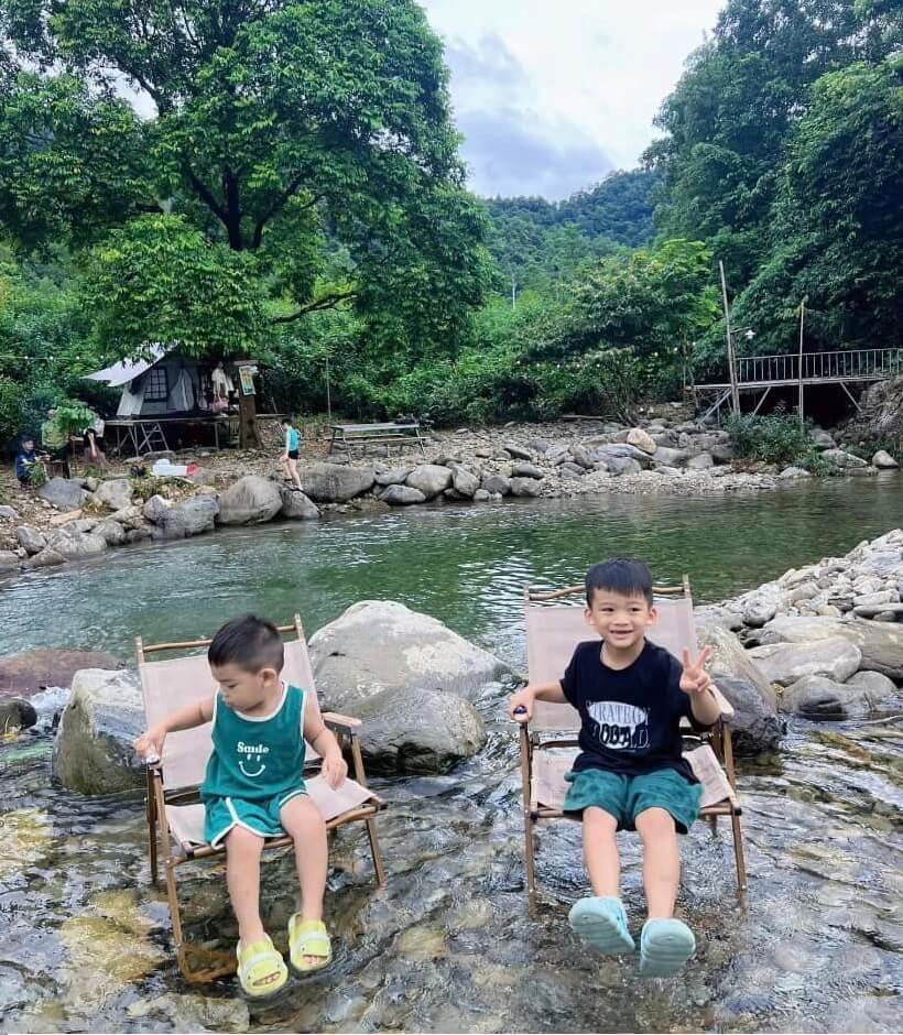 Combo cắm trại bên suối trong ngày + đồ ăn: 230k/người. Trẻ dưới 1m1: 50k/trẻ