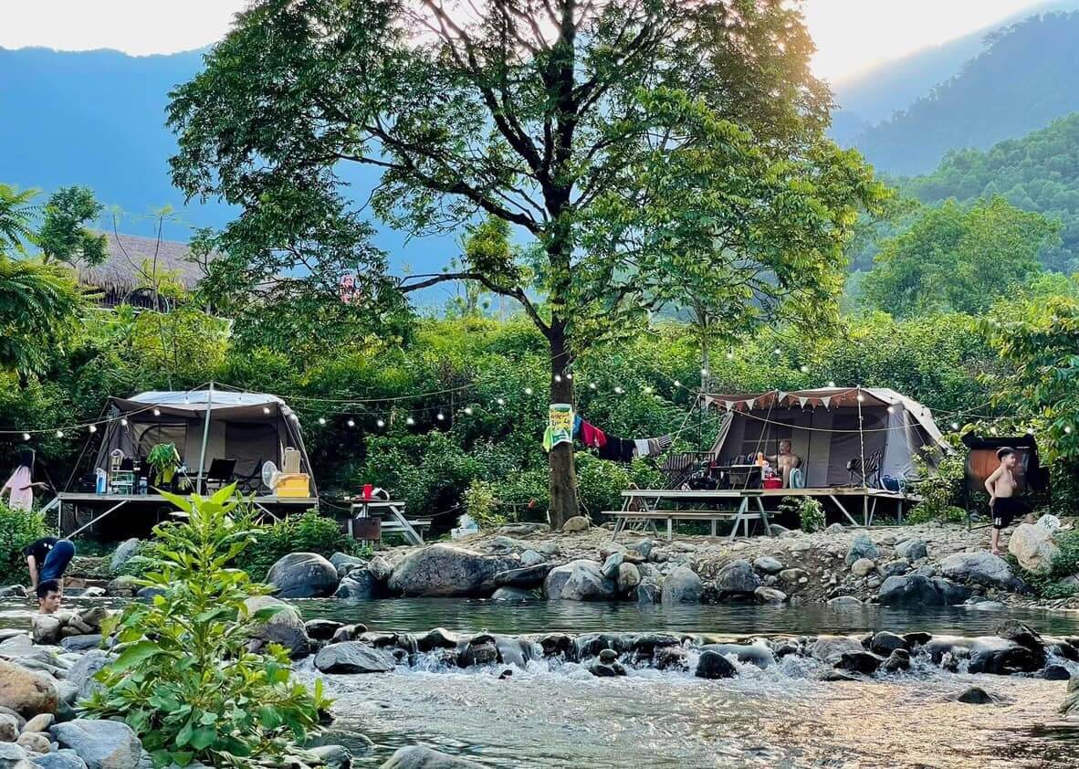 Đá Cổng Quán là một điểm đến hấp dẫn cho những ai yêu thích khám phá thiên nhiên hoang dã. Tại đây, bạn có thể cắm trại sát bờ suối và tham gia các hoạt động như bơi lội, thám hiểm suối nước và tắm suối. Đây là địa điểm lý tưởng cho những ai yêu thích Glamping, muốn tìm kiếm một không gian nghỉ ngơi và giải trí độc đáo mà không cần phải đi quá xa.