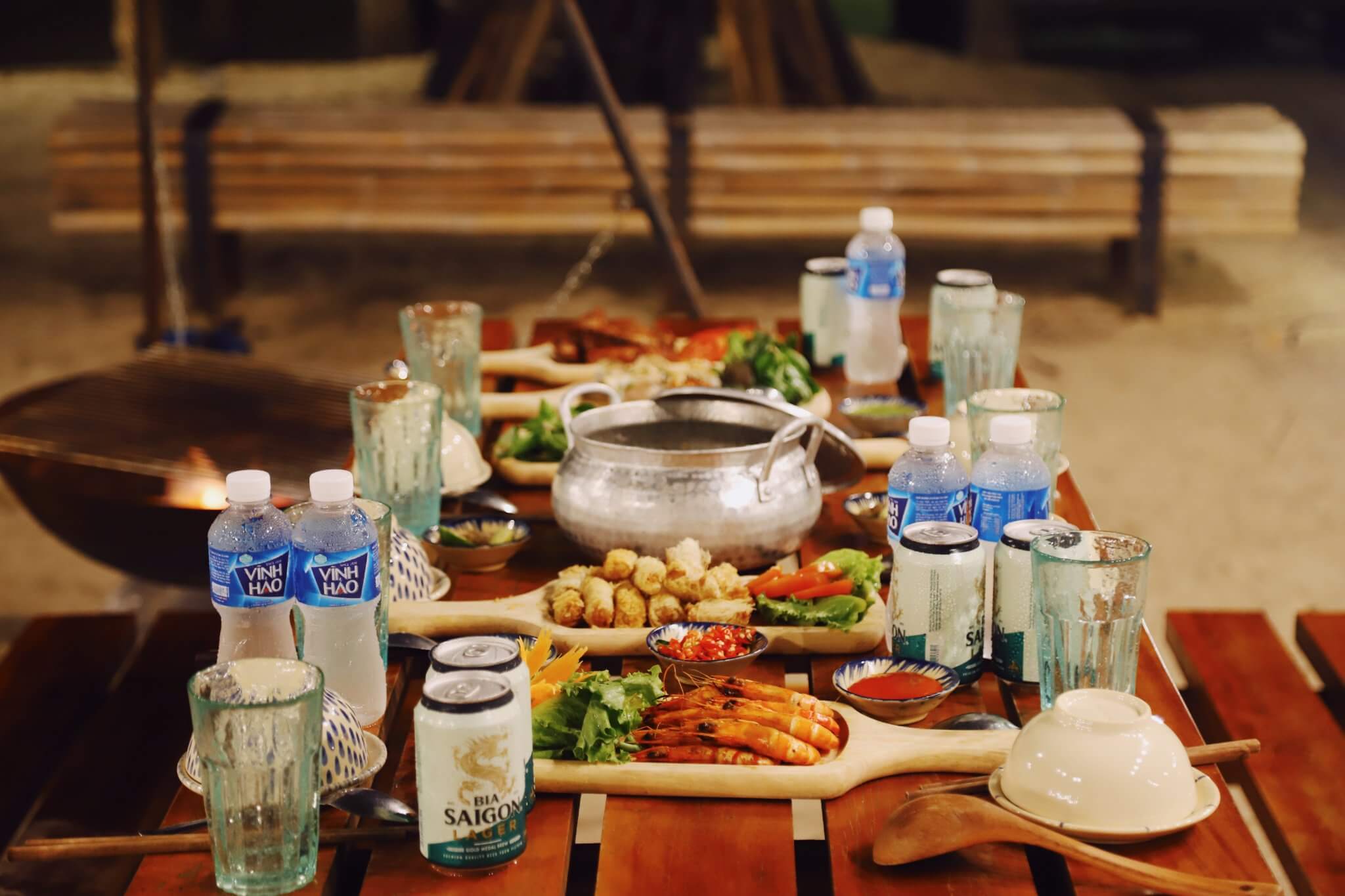 - Riêng lều: nước suối, bàn chải đánh răng, quạt, dù, khăn tắm, khăn tay, nhà tắm, wc ngoài