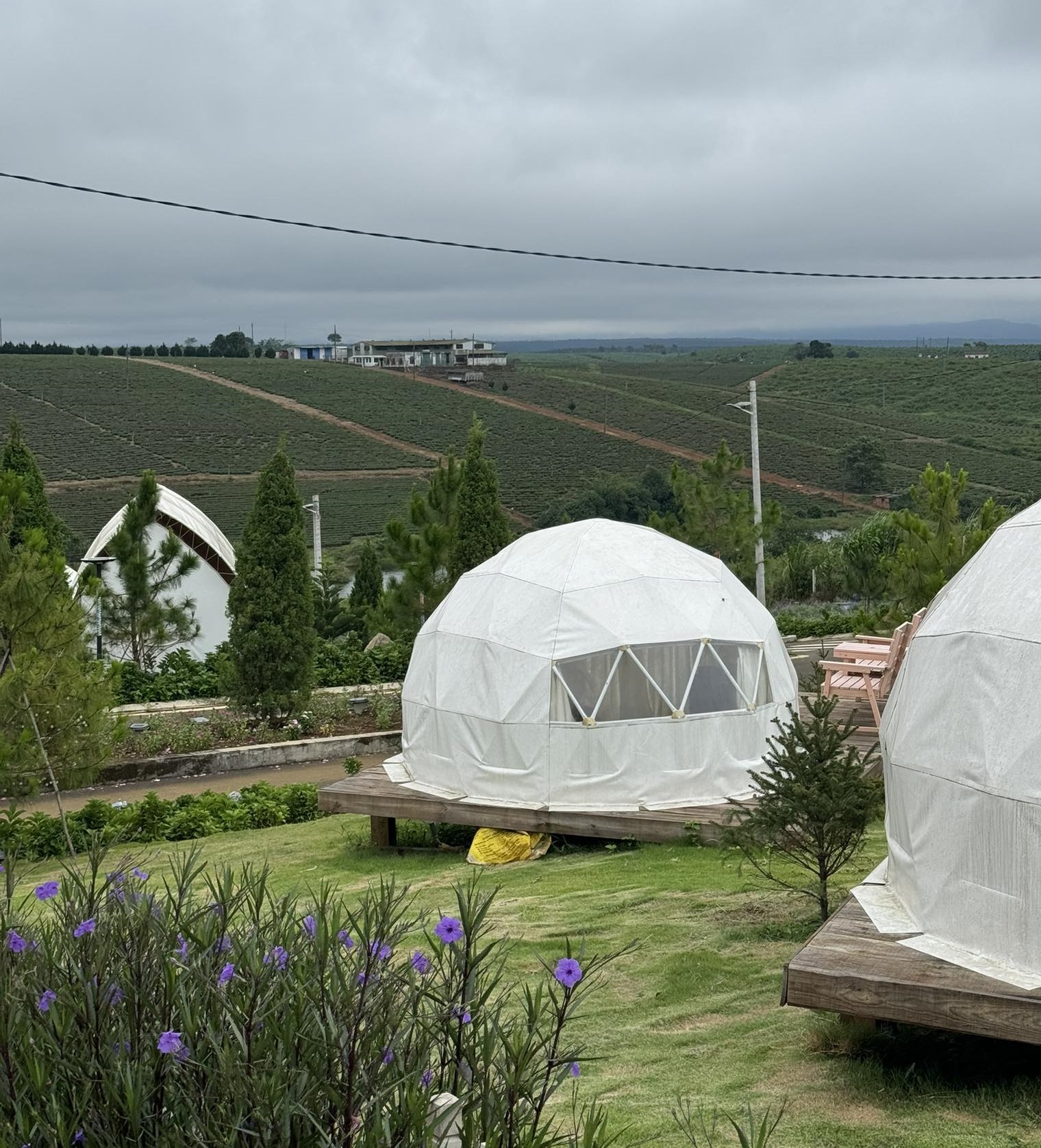 La Fleur Glamping nằm trên triền đồi tách biệt với khu dân cư, La Fleur Glamping được miêu tả là “tọa độ” cắm trại nghỉ dưỡng hoàn hảo để đi “trốn” vào mỗi dịp cuối tuần. Hãy hình dung ra việc bạn thức dậy trong một chiếc lều ấm áp, trên một chiếc giường êm ái và tận hưởng ngay khung cảnh mây bay trước mắt, như thể với tay là chạm được. Trên bàn tách cà phê nóng hổi, nhìn từng ánh nắng rót lên đồi trà xanh mướt, trong khung cảnh miên man của cây cỏ, hoa lá ẩn giữa tầng mây sẽ là những cảm xúc trở về với tự nhiên trọn vẹn nhất, một trải nghiệm căng tràn sức sống mà La Fleur sẽ mang đến.