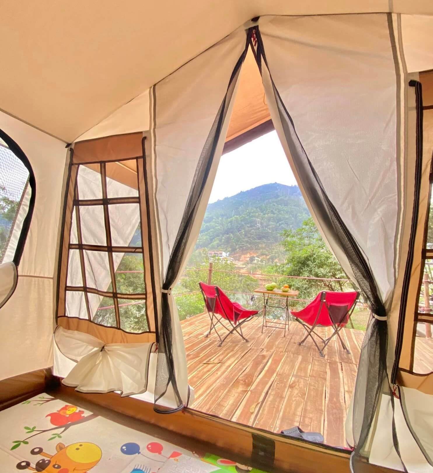 - Lều được trang bị đầy đủ các thiết bị cơ bản, mền, nệm,ghế