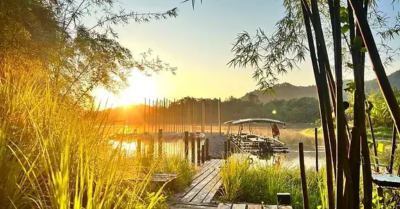 - Tham quan hồ bằng bè tre