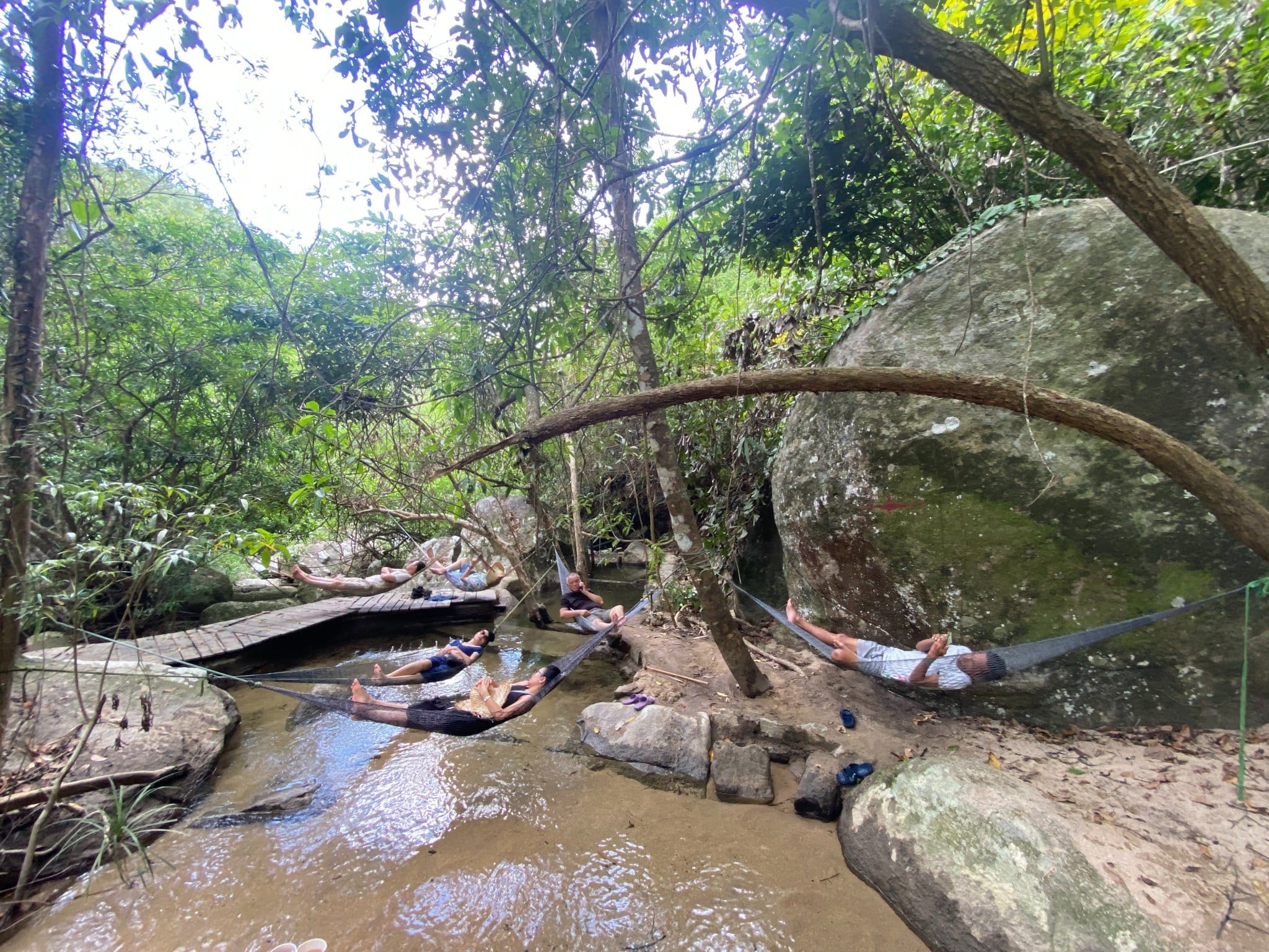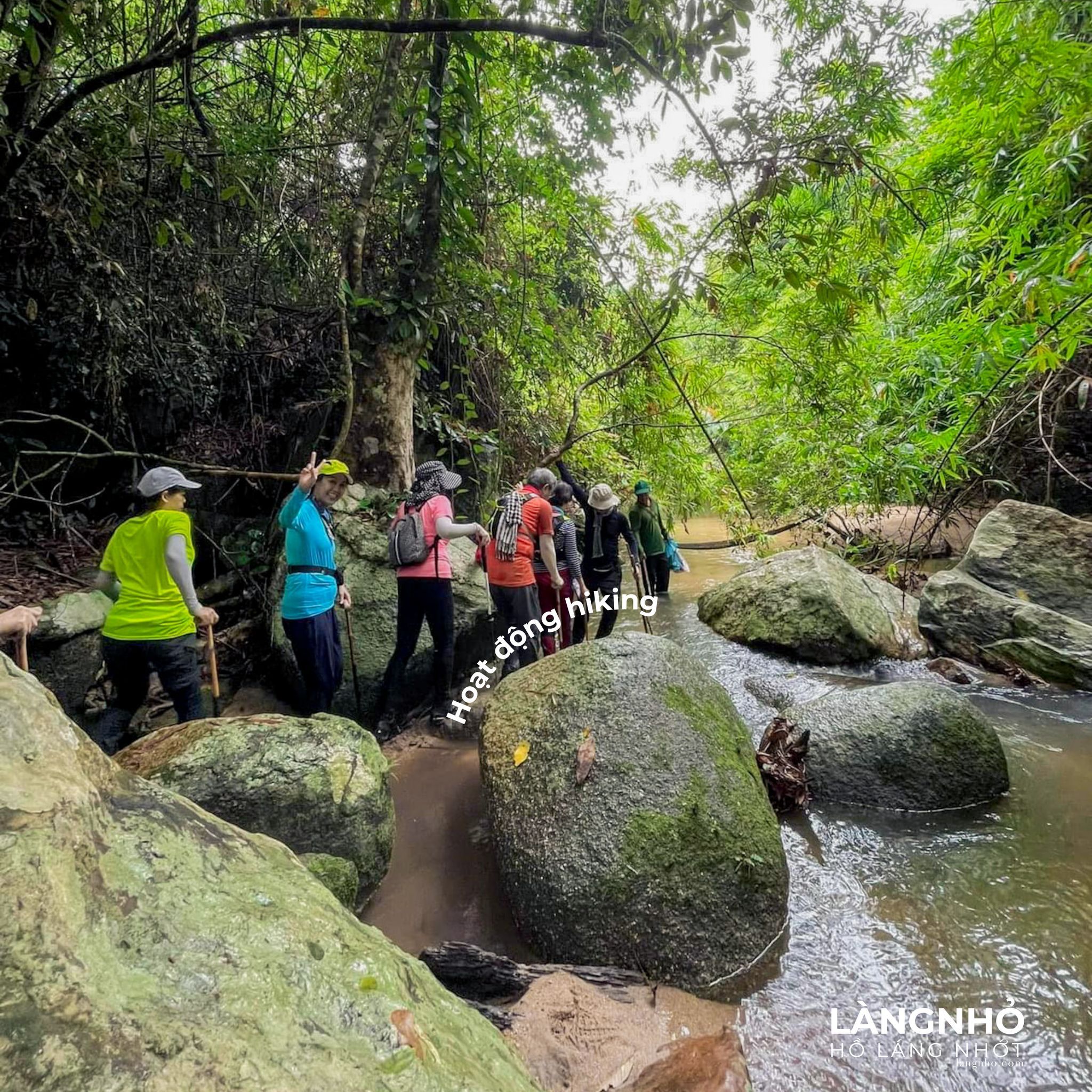 - Hiking đường rừng 3km-5km hoặc đi dạo bộ lên suối