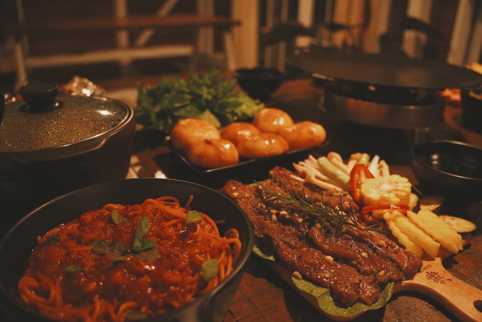 - Bữa tối lẩu nướng tại khu cắm trại