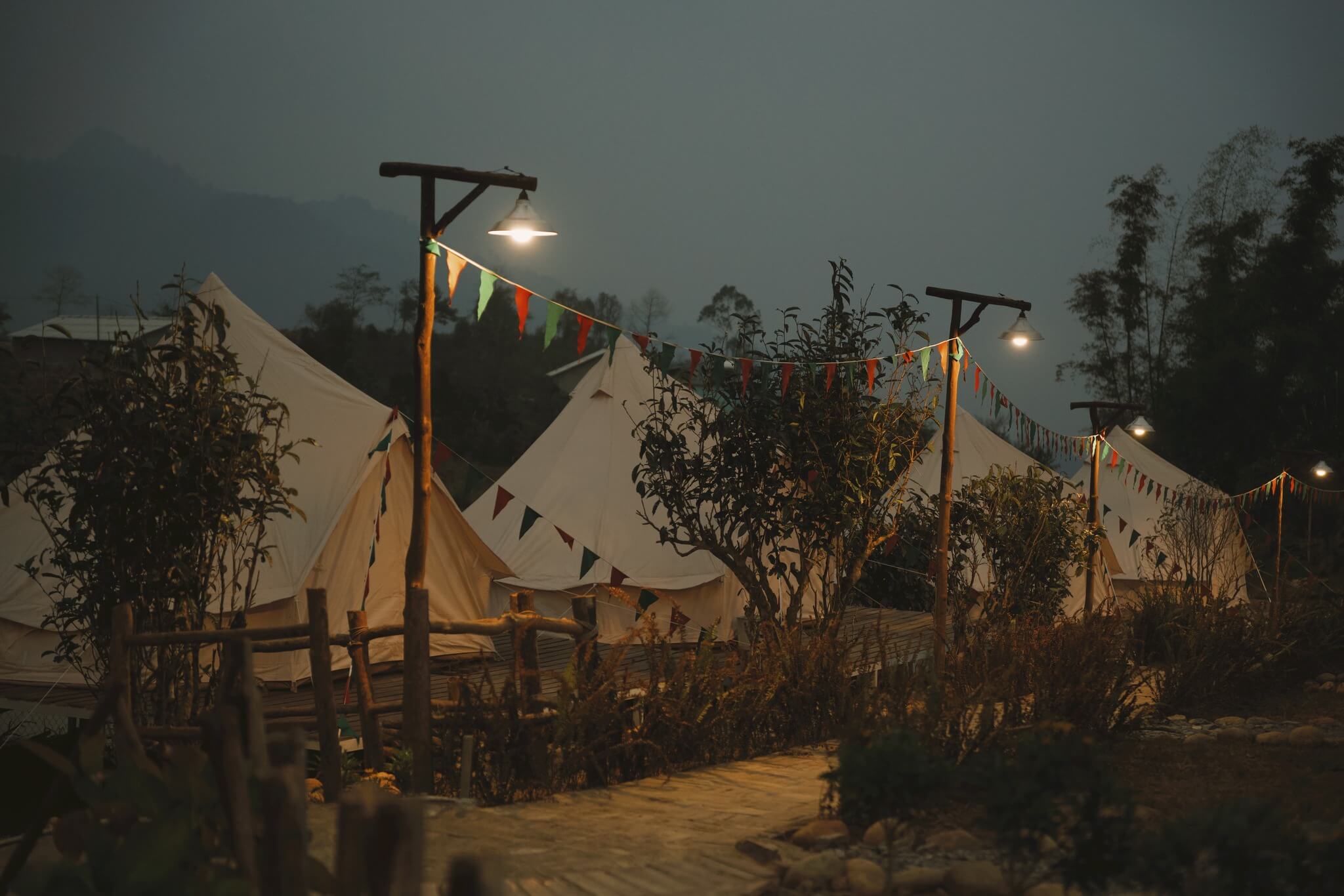 - Khu cắm trại ban đêm