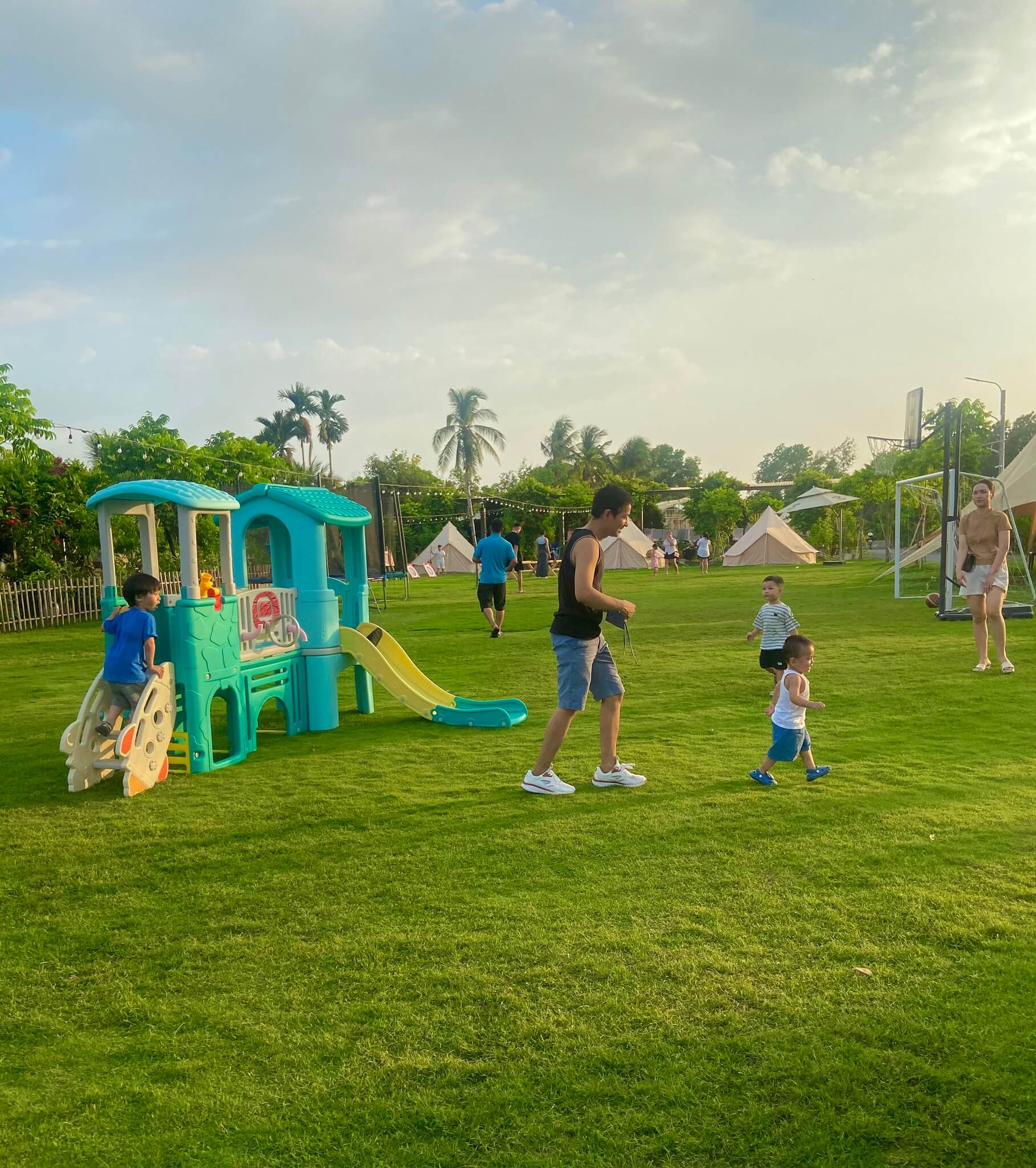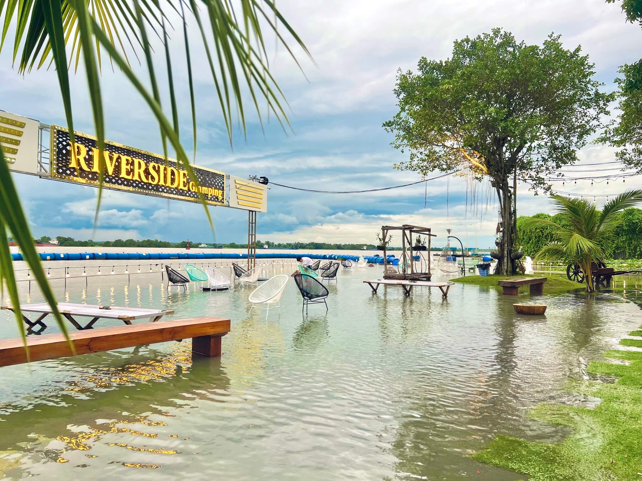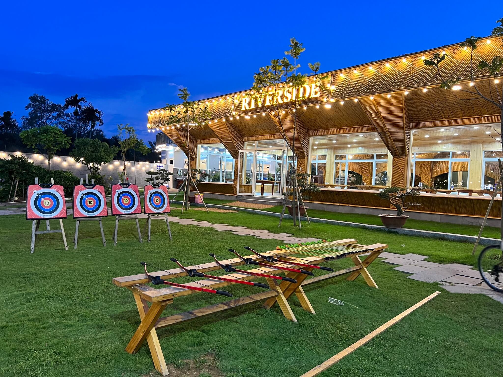 Riverside Glamping, địa điểm chỉ cách Sài Gòn 30 phút đi xe, tụ điểm vui chơi giải trí ven sông, cắm trại ngoài trời, phục vụ ăn uống và các trò chơi vận động! Miễn phí tham gia các hoạt động đá banh, bóng rổ, tô tượng, đạp xe đạp, bida, bắn cung, thú nhún, cầu trượt, hoạt động dưới nước,…Ẩm thực đa dạng, tiệc BBQ bên bếp lửa ấm cúng. Nhà vệ sinh sạch sẽ, đầy đủ tiện nghi, đảm bảo an toàn cho cả gia đình.