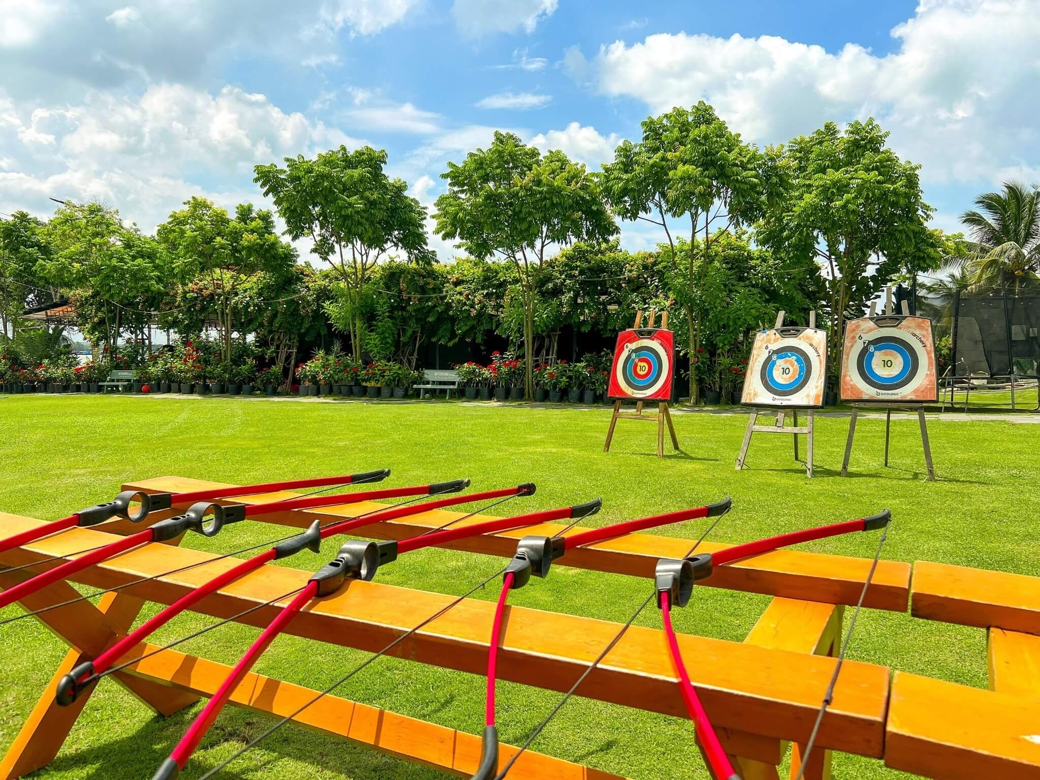 - Các trò chơi trong khu: Bóng đá, bóng rổ, bắn cung, thú nhún, cầu trượt, bi-a