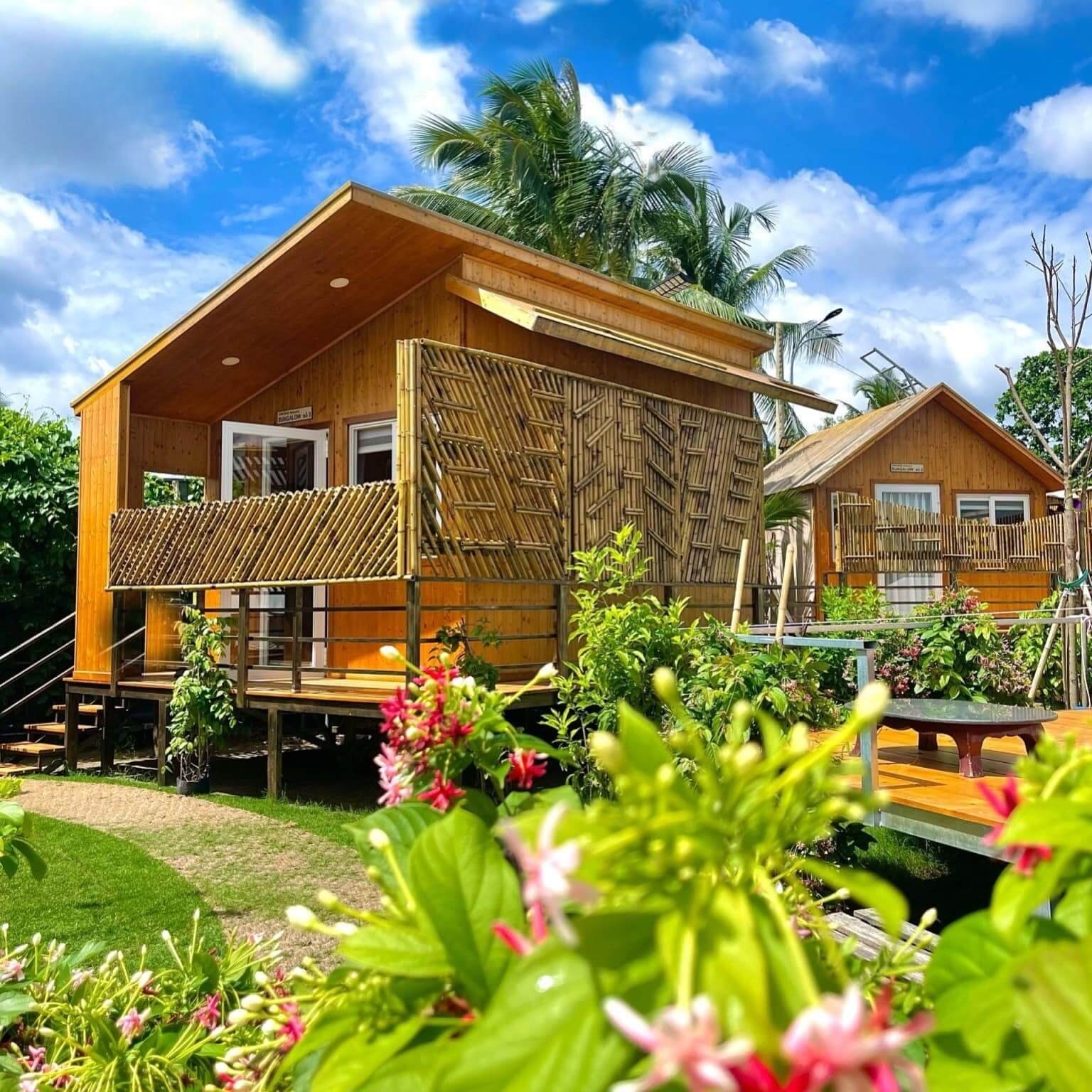 - Kệ gỗ, giỏ mây, đèn ngủ, bàn nhỏ, quạt, máy lạnh, tivi- tủ lạnh(Bungalow), chăn, ga, gối, nước khoáng, khăn tắm, bàn chải, kem đánh răng.