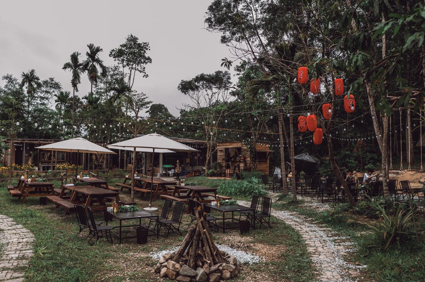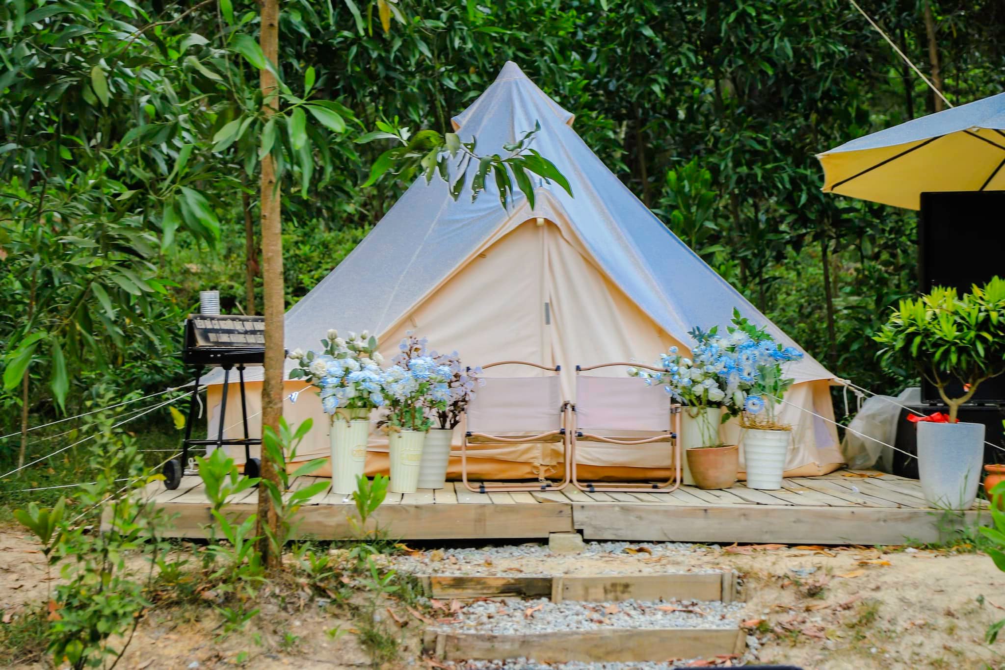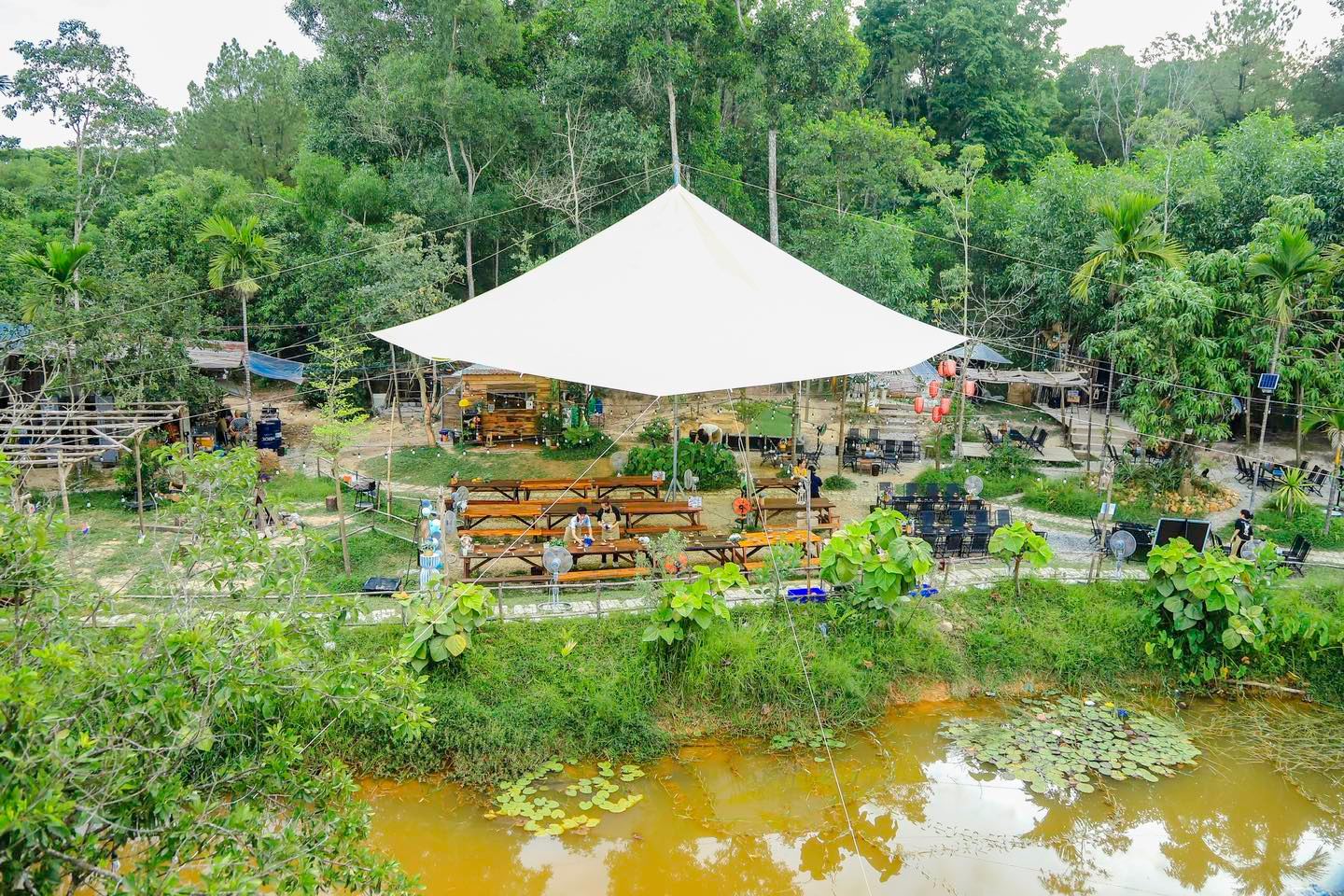 - Nhà vệ sinh + nhà tắm chung nằm gần lều