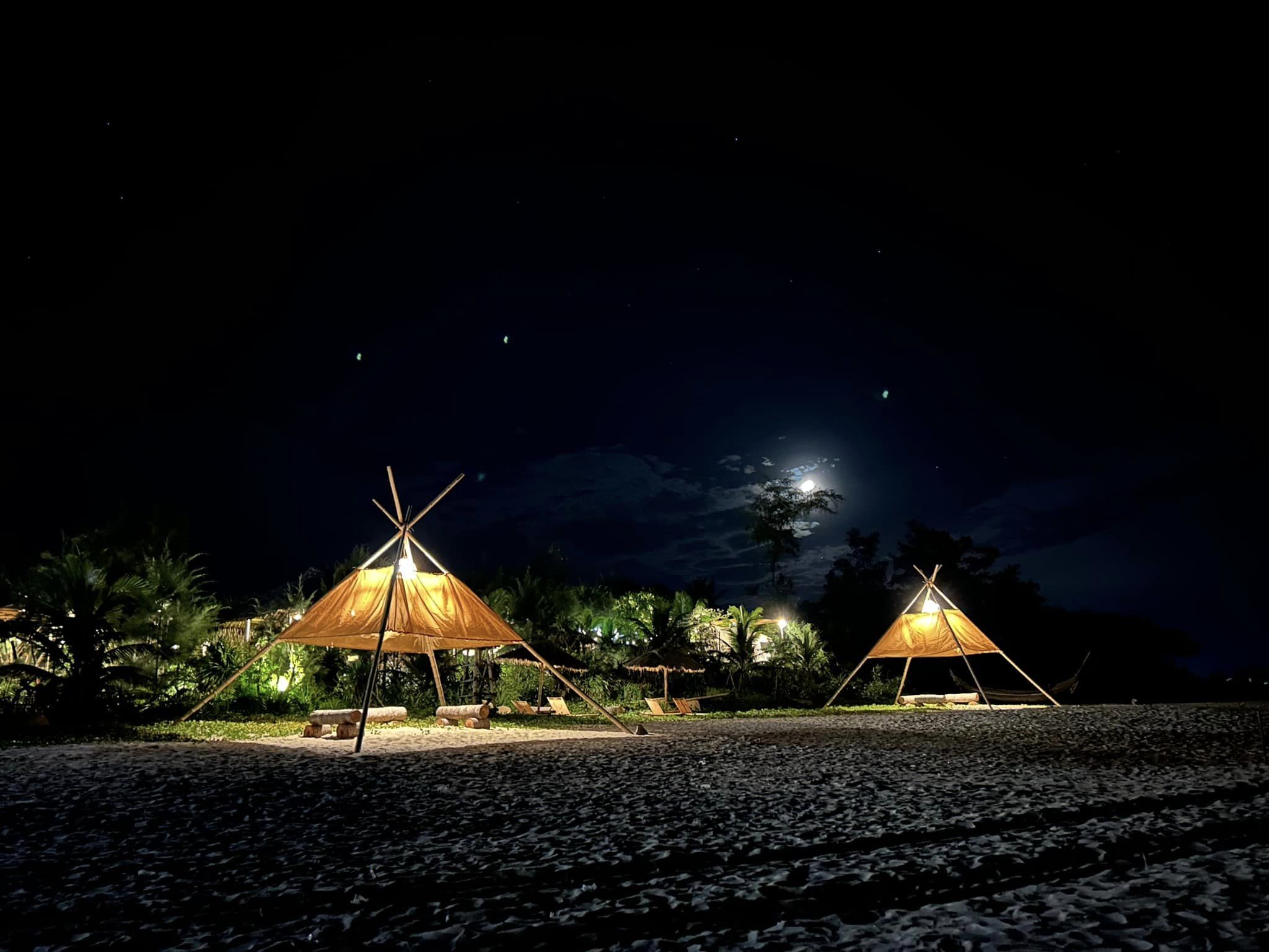 - Nệm, chăn, ga, gối, bàn, ghế, nước uống, ly, khăn, sọt đựng đồ, máy lạnh – phòng, quạt – lều.