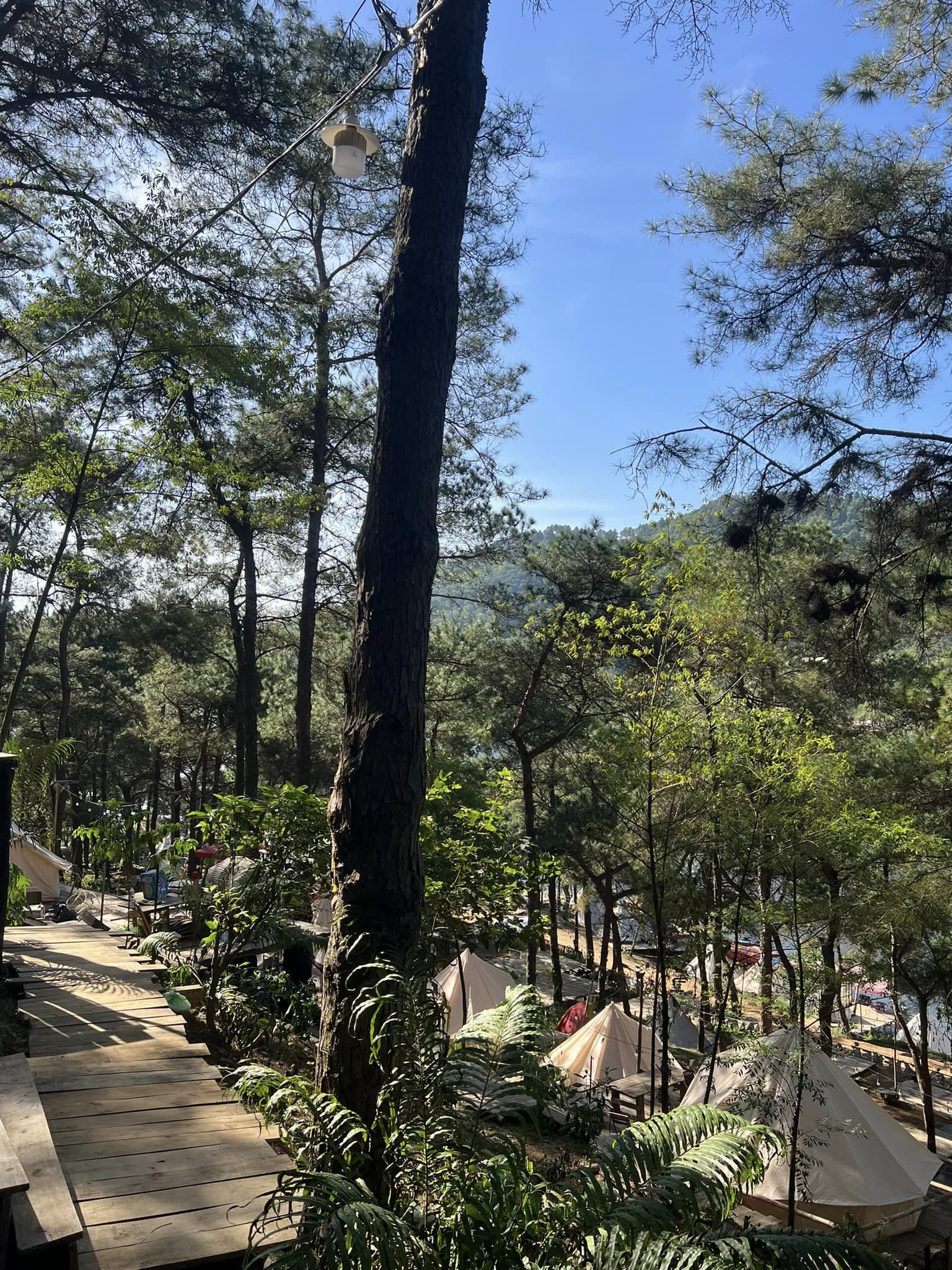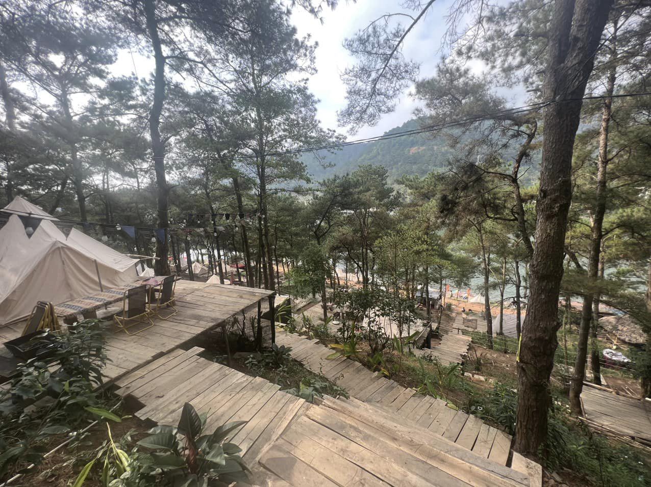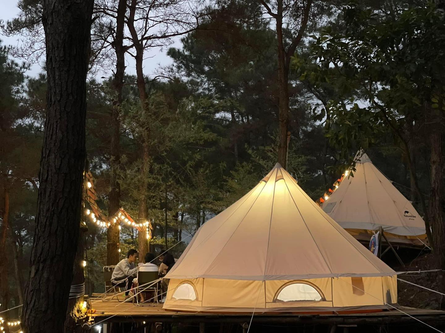 Sky Glamping – nằm cạnh hồ Đồng Đò, khuôn viên rộng rãi với những hàng thông tựa như một Đà Lạt thu nhỏ. Nơi đây tạo một cảm giác bình yên khỏi những ồn ào phố thị, đặc biệt là nơi vui chơi giải trí thú vị sau những giờ làm việc mệt mỏi.