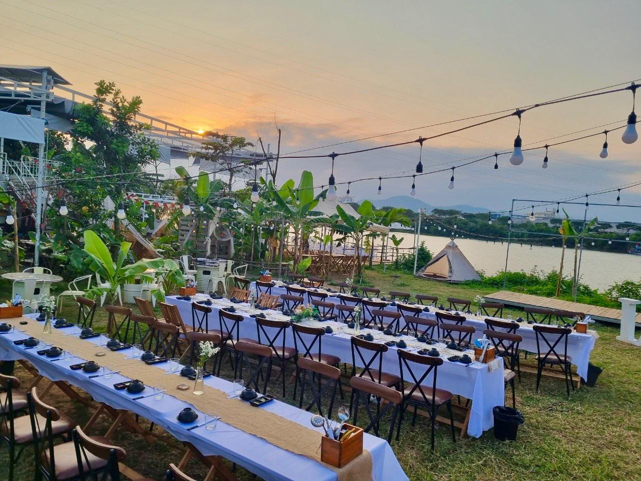 Soul Camping BBQ với mô hình nhà hàng kết hợp phong cách cắm trại, nằm ngay dưới chân cầu Hoà Xuân, có view nhìn ra sông Cẩm Lệ – Cầu Đỏ nhẹ nhàng, thơ mộng với không gian rộng, thoáng có mái che với sức chứa lên đến 400 khách.