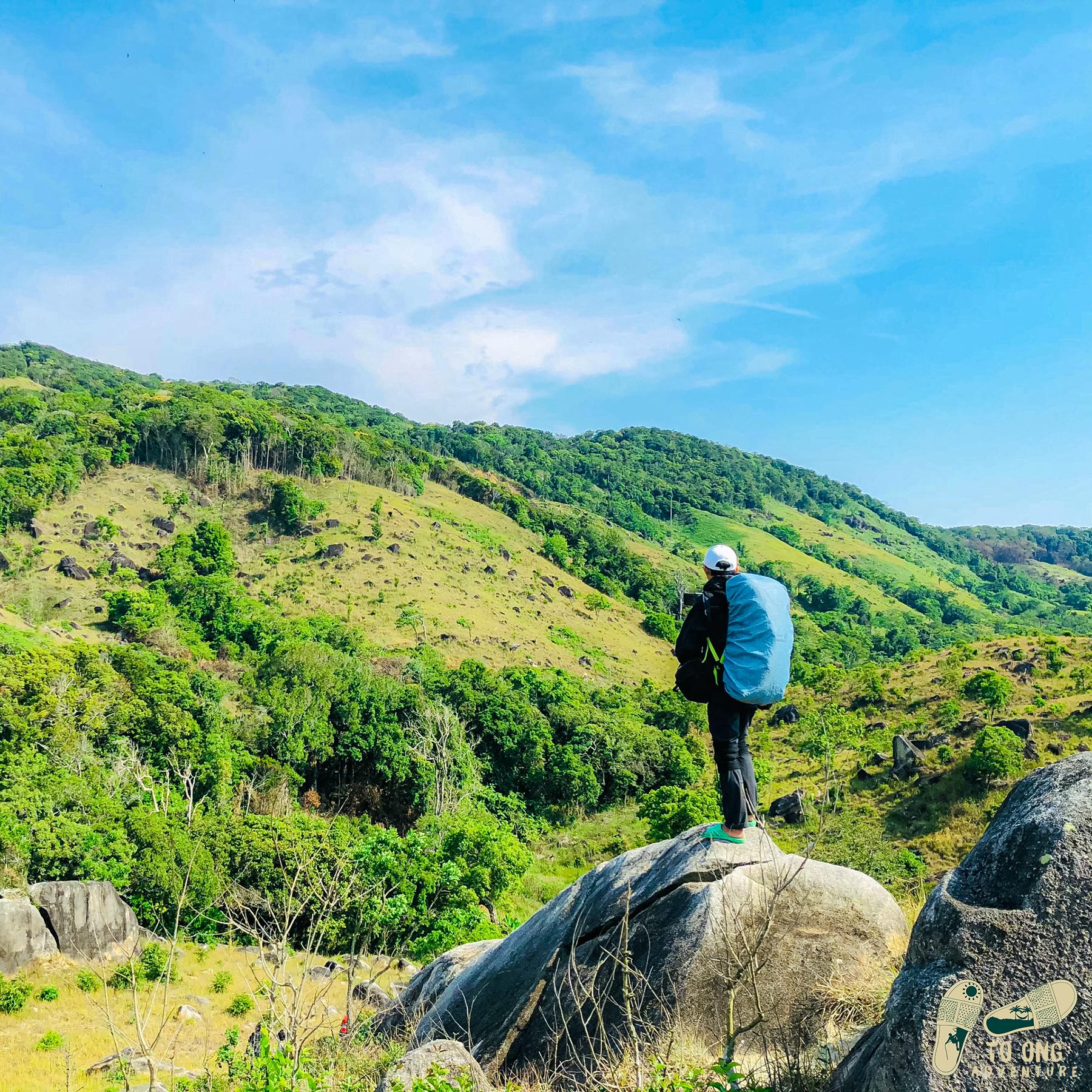 Đến ngã ba đồi cỏ tiếp tục di chuyển đến bãi cắm trại.