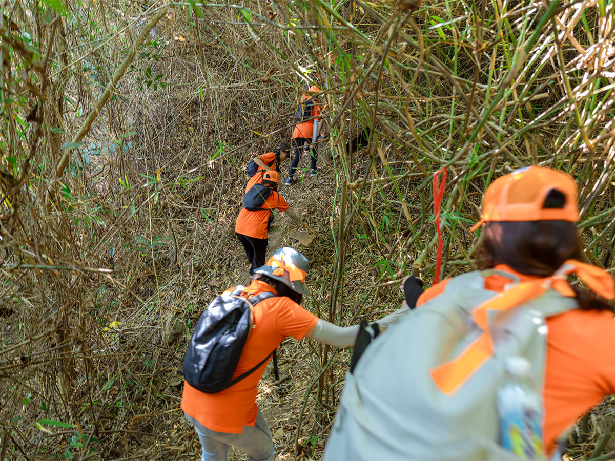 - 09h30: Đến chân núi Lớn (núi Tương Kỳ), HDV phổ biến hành trình, các thành viên nhận nhu yếu phẩm được cung cấp (Nước suối + Revive). Khởi động và hành chinh phục đỉnh núi Lớn chính thức bắt đầu.